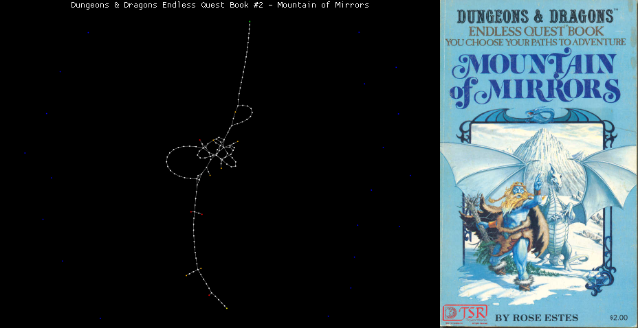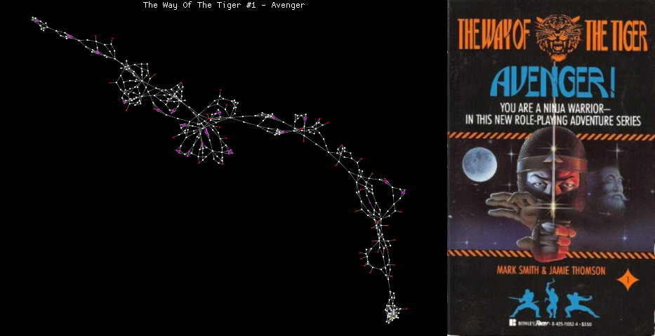 When I was a kid in the 80's, I loved Choose Your Own Adventure books and the Fighting Fantasy series. I've collected a few gamebooks from thrift stores and was curious about their node structure and how they compared across the various series. Below are the gamebooks I've entered into an exploding node graph I created in MonkeyX.